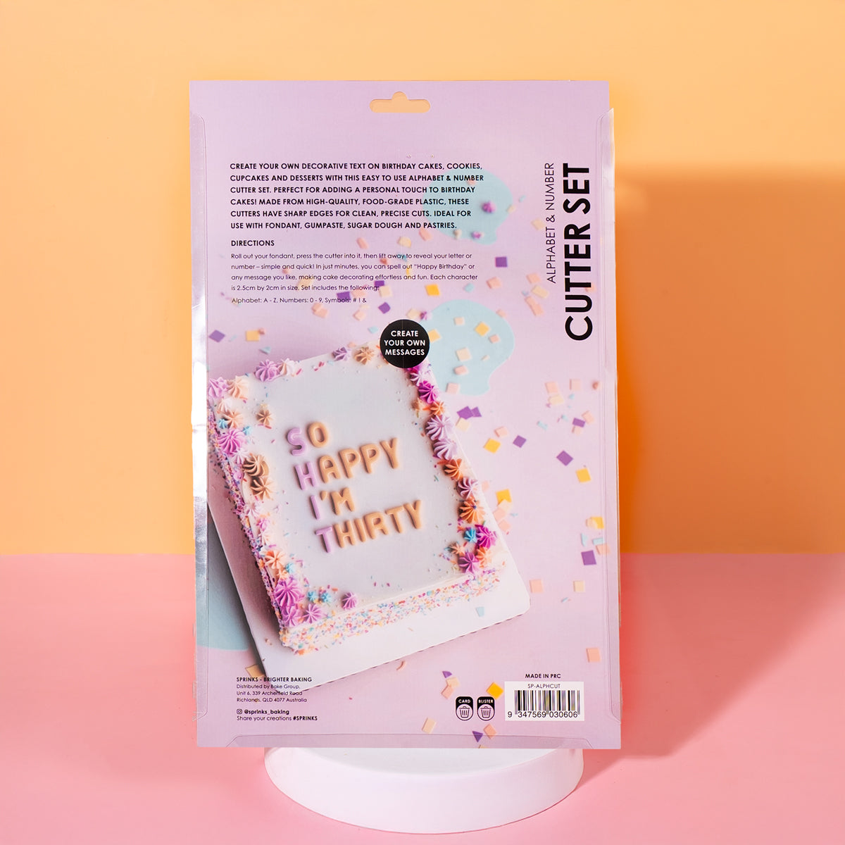 Spell it out in style with the Sprinks Alphabet & Number Cutter Set 40 pieces. Perfect for adding personal touches to cakes, cookies, and bakes, this handy set includes: