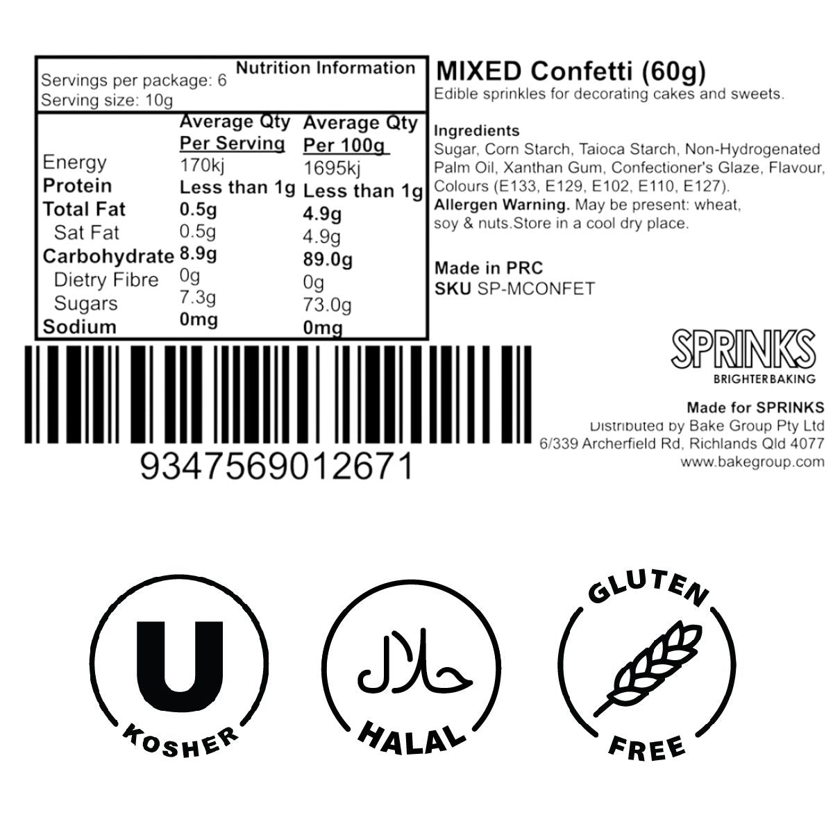 Celebrate with Sprinks MIXED Confetti (60g). These festive, confetti-shaped sugar sprinkles add a joyful touch to cakes, cupcakes, and cookies. Packaged in a wide-mouthed, mess-free jar, they’re easy to use, surpassing traditional shakers. Sprinks offers a creative range of sugar decorations to inspire your baking. The sleek, contemporary packaging is both stylish and practical for storage. Perfect for birthdays, weddings, or any cheerful occasion. Brighten your desserts with these playful MIXED Confetti (60g) sprinkles. Create with Sprinks’ vibrant charm!