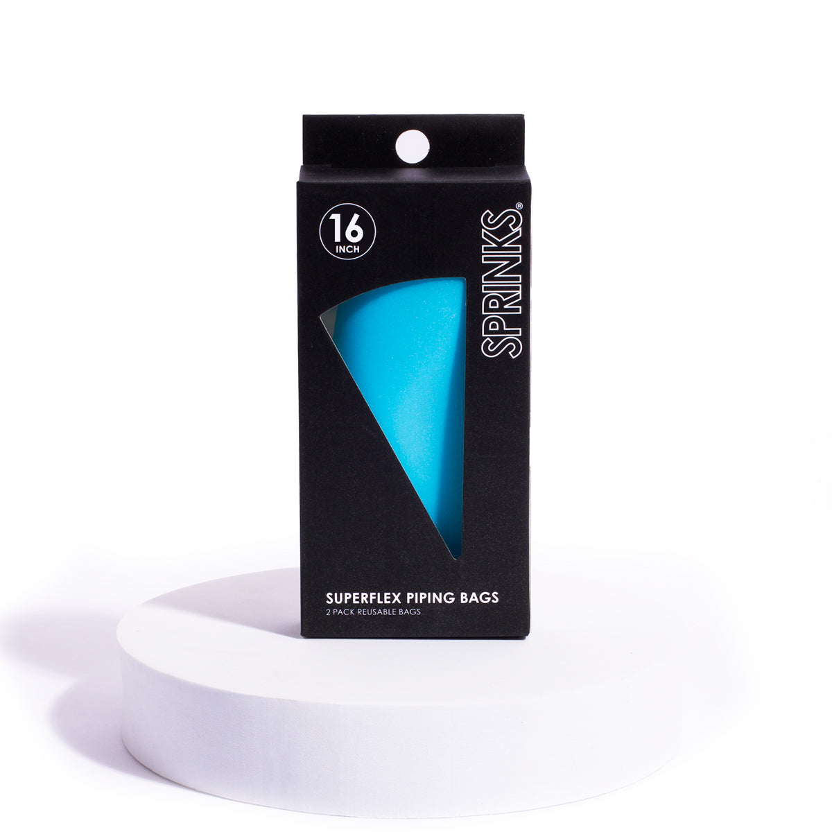Take your decorating to the next level with Sprinks Superflex 16 inch Piping Bags. This reusable 2-pack comes in a plastic-free hangsell box, making them a sustainable and practical choice for every baker.